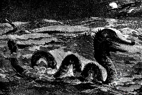 自古以来,世界各国的渔夫和水手们中间就流传着可怕的海中巨怪的故事。在传说中,这些海怪往往体形巨大,形状怪异,甚至长着七个或九个头。其中最著名的当属民752年卑尔根主教庞毕丹在《挪威博物学》中描述的“挪威海怪”,据说,“它背部,或者该说它身体的上部,周围看来大约有一里半,好像小岛似的。……后来有几个发亮的尖端或角出现,伸出水面,越伸越高,有些像中型船只的桅杆那么高大,这些东西大概是怪物的臂,据说可以把最大的战舰拉下海底。”
