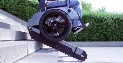 这可能意味着轮椅坡道与轮椅电梯将要终结了,因为瑞士的工程师们发明了一个能够上下楼梯的电动轮椅。Scalevo轮椅利用橡胶“坦克”履带甚至能做到在楼梯上逆向移动。这项技术的出现意味着公共建筑中的轮椅坡道和轮椅电梯变得越来越没有必要。