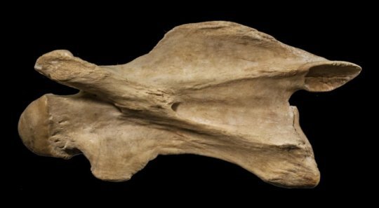 现代长颈鹿的第三块颈椎。这一物种经历了颈椎延长的两个阶段,从而导致它拥有极长的脖子。