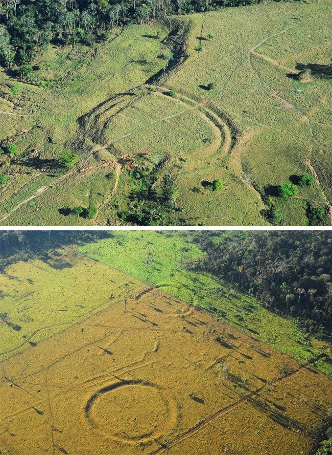 研究亚马逊热带雨林的滥伐问题时,科学家发现地上出现神秘的地质印痕。专家们在巴西北部发现了450多个地质印痕,最古老的地质印痕有3000-3500年历史。专家认为,它们是原住民会议、讨论和举行仪式的地方。