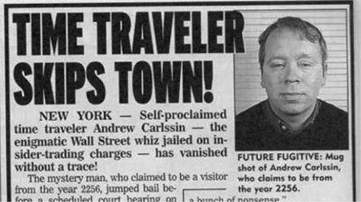 2003年,FBI逮捕了一名被控证券交易诈骗的男子。他本来只有800美元,后来透过126次高风险交易,得到了3.5亿美元。安德鲁被捕后,声称自己来自2256年的时间机器,从未来知道这些资讯。后来有人为他付了100万美元的保释,之后安德鲁就消失了。