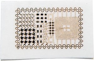 生物戳一般有一个可伸缩的超薄橡胶和内置的电路组成,为了压缩这些电路,他们先通过常用的半导体材料制作晶体管、二极管、电容和一些其他电子元件。除了常见的硅,他们还是用砷化镓、氮化镓等材料。还有些比较罕见的半导体芯片,有点像奥利奥,构成一种夹层结构。最后还需要通过化学蚀刻除去额外的部分。