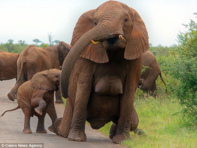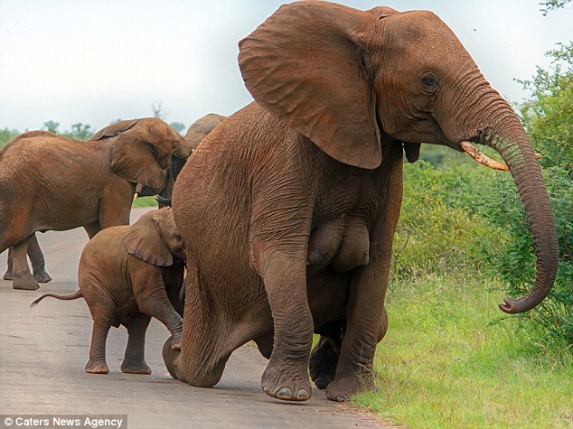 一名51岁的野生动物摄影师雷娜塔 (Renata Ewald) 在南非的克鲁格国家公园 (Kruger National Park) 拍到一系列非常珍贵的照片。她在当天早上遇到一群野生象群,看着母象带着小象一起散步的样子非常可爱,她也刻意保持距离,不希望打扰到他们,但这时她却发现了引人注目的一幕,她看到一只非常特殊的母象,因为她露出了巨大的乳房在胸前,而她也赶快拍下这难得的画面。
