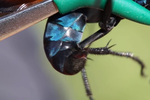 尽管蛛蜂的钉刺凶猛无比,但其实它们还算是满友善的动物,不太会主动攻击人类。再加上拥有亮蓝色外骨骼和橘红色翅膀,是不是还满想摸摸它们的啊?
