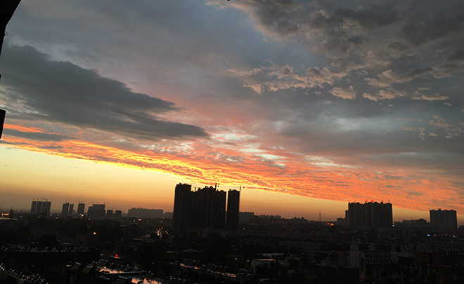 火烧云是日出或日落时出现的赤色云霞。火烧云属于低云类,是大气变化的现象之一。它常出现在夏季,特别是在雷雨之后的日落前后,在天空的西部。由于地面蒸发旺盛,大气中上升气流的作用较大,使火烧云的形状千变万化。火烧云的色彩一般是红彤彤的,火烧云的出现,预示着天气暖热、雨量丰沛、生物生长繁茂、蓬勃的时期即将到来了。
