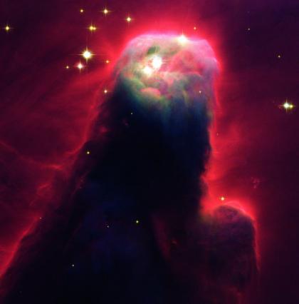 这个有着锥形外表的被唤作锥状星云,锥形体的高度相当于月球周长的23,000,000倍,而这整个星云的长度足足有7光年长,因此人们相信它当中孵化着大量的恒星。