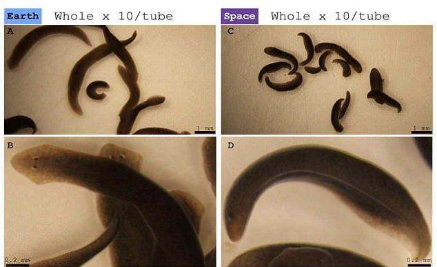 研究者也发现,送到太空的健全涡虫会经历自然分裂,也就是身体分成两个或更多个相同的个体,而在地球上的虫不会。