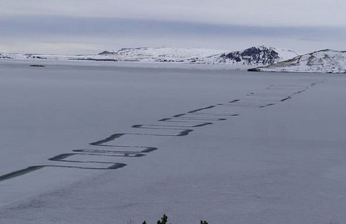 Einar把神秘画面的照片分享到公园的脸书专页,他说明:“有人看到怪异图样出现在冰片上,居民以前从来没看过这种事。”