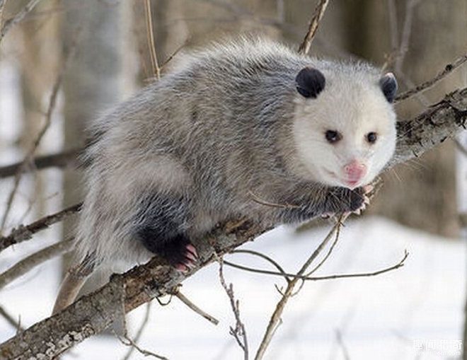 北美唯一的有袋类动物是可爱的泰迪熊和褐鼠的杂交物种。它们属于地球上最古老的哺乳动物,其化石记录的时间可追溯到7000万年前。长久以来,北美负鼠一直保持着其基本的生活方式。它们和袋鼠一样,利用身上牢固的育儿袋携带幼崽,如果偶尔有车辆将母亲撞倒,育儿袋中的幼崽仍能安然无恙。其育儿袋还具有防水功能,在母亲游泳的时候,袋中那蜜蜂大小的幼崽仍能保持干燥。