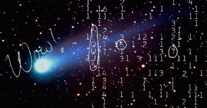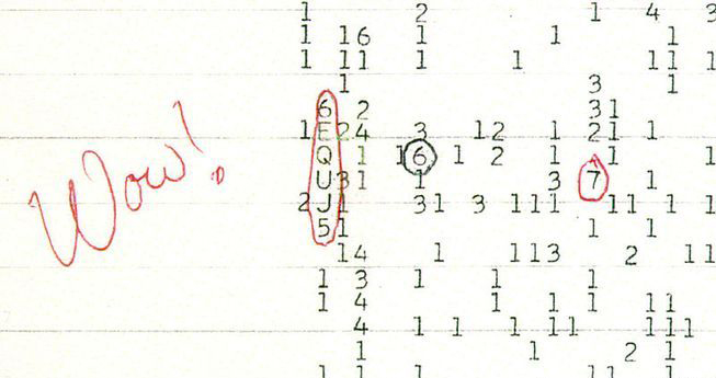 当扫描这群恒星周围的天空时,Ehman捕获到一个72秒的无线电波爆发:他把读数圈起来并写道:“Wow!”:在它旁边是讯号的名称。在过去40年期间,这个讯号被引用为我们在星系并不孤单的证据。专家和外行人都相信,最终我们会有外星生命的证据。