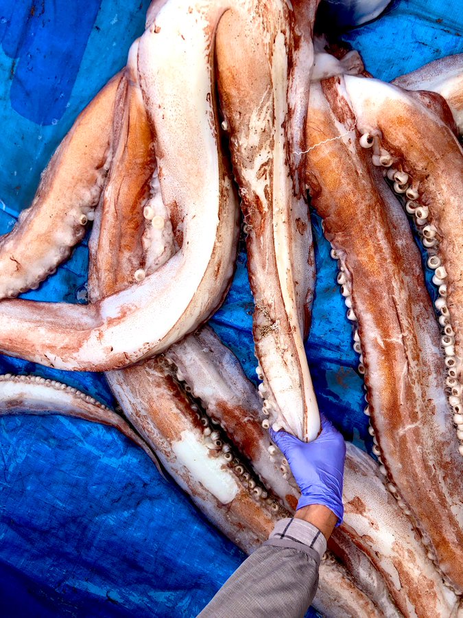 日本福井县小滨市一名渔夫20日在宇久(うぐ)渔港修补渔网,突然在码头下发现一只巨大的鱿鱼。这只大王鱿鱼来自深海,身长3.35米、重达80公斤,被发现时虽然十分虚弱但还活着,让渔民啧啧称奇,不过讯息分享到网络上后也让许多网友十分担忧表示,“这该不会是大地震的先兆吧?”