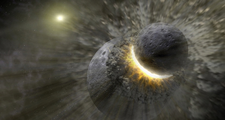 假如你需要复习,月球被认为是在地球与忒伊亚(Theia)碰撞后,从地球切掉的物质所形成的。忒伊亚是一个存在于早期太阳系中的行星大小物体,或者或许是一堆较小的物体。