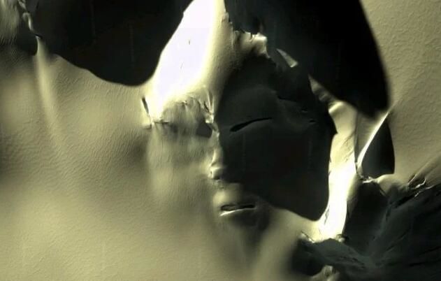 根报道,国外一网友在网上上传了一段影片,地点是南极标“72°00′36.00” S,168°34′40.00” E”的位置发现了一张超清晰的"外星人"脸。
