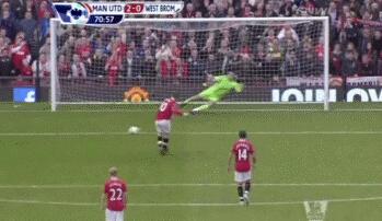 预测失误的守门员扑向球相反的方向