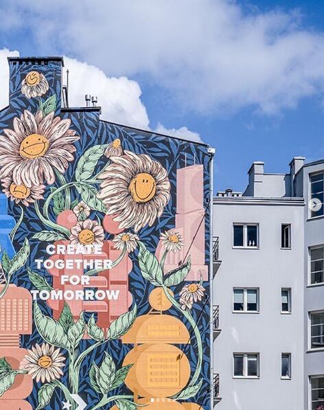 基于这个项目,波兰艺术家利斯基(Dawid Ryski)与波拉克(Maciek Polak)以一种光触媒颜料,在华沙街头绘制一幅巨大的花草壁画。其中,利斯基专注于建筑元素,而波拉克负责基本图案。