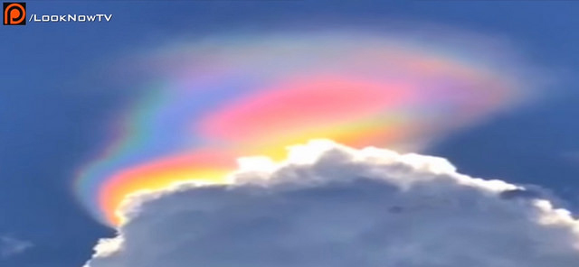 彩虹云是由太阳或是月亮光反射形成的!是冰水晶悬挂在大气层,典型的卷层云。