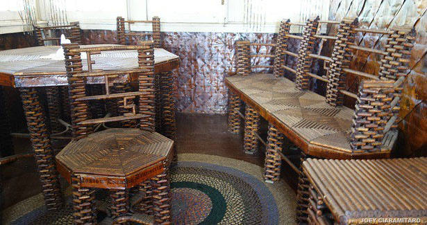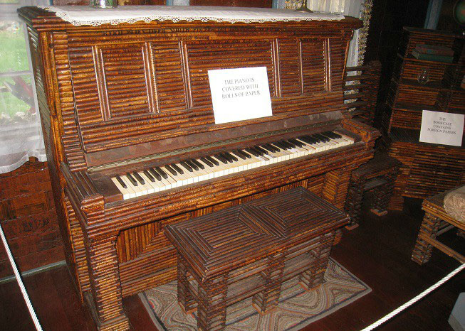 后来,Stenman开始用捲状报纸制作椅子、桌子、灯,甚至是钢琴,他用面粉、水和苹果皮自制胶水,把报纸黏在一起。很快的,房子的内部大都用报纸装潢好了,这些报纸大多是他朋友和邻居提供的。
