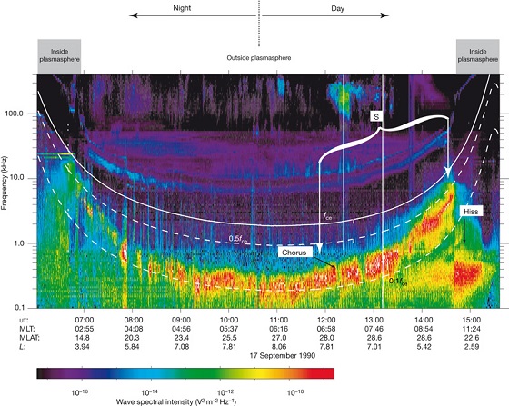 根据麻省理工学院新闻网站所写:“造成此种高能辐射的发生看起来不像地球磁场也不是远程无线电波,而是一种称为『等离子层嘶声』“plasmaspheric hiss”的现象,一种在地球大气层上的低频电磁波,如果使用扬声器拨放时就类似静电噪声或白噪声。”