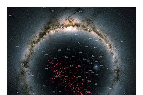奥地利维也纳大学(University of Vienna)的天文学家观察到一条至少有4000颗恒星组成的星河正“浩浩荡荡”地横跨南半球,几乎覆盖了整个南半球星空。