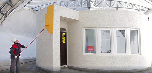 以前人们会在仓库或实验室中,将房子的零件、桥梁以3D列印制成,接着送到他们指定的地点组装,但Stupino的房子完全是Apis Cor公司在现场列印出来的。他们使用一台像起重机大小的移动式3D列印机,以及特制的灰泥混合物,并用恒温的帐篷罩住整个操作区。