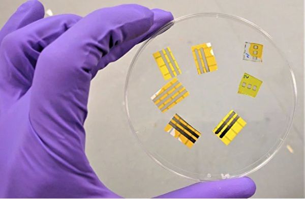 科学家新发明一种简单地贴在皮肤上的有机发光二极体(OLED)设备,可用于监测人体的健康指标,或贴在水果的表皮上警示水果的变质。不需要的时候用水清洗即可移除。
