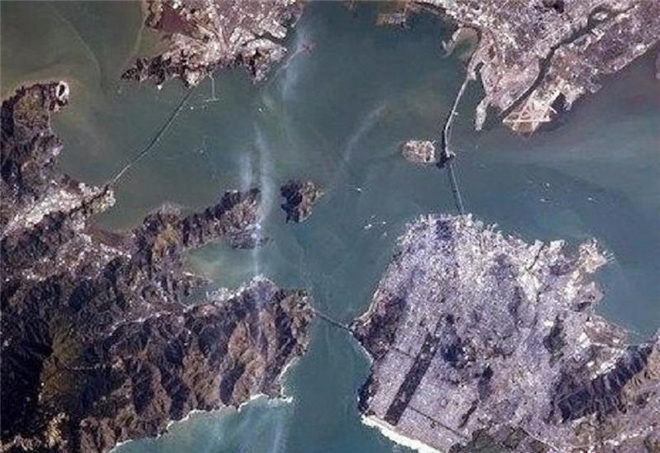 桥梁:人类建造桥梁的历史非常悠久,而且我们现在非常善于建造它们。我们从建造小型的木桥和石桥,逐渐演变成建造钢铁大桥和混凝土大桥,每年能够承载数百万辆车辆通行。这些巨大的桥梁能够横跨数千英尺的水面连接岛屿。这张照片是国际空间站的宇航员Christ Hadfield从旧金山湾上空拍摄到的。