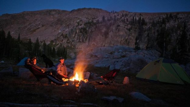 在山中度过漫长的一天后,两位研究人员在篝火旁休息(Credit: Matt Stirn)