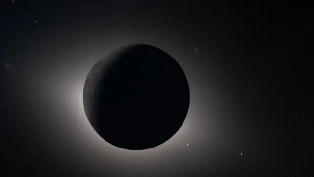月亮正在遮蔽太阳。这是太空船在深空中拍摄下的画面。