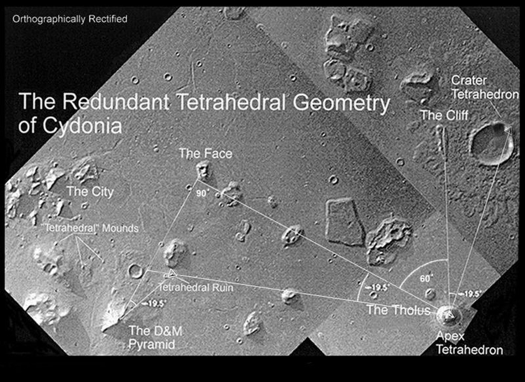4. 19.5度,为以下研究员Richard C. Hoagland, Stanley McDaniel, Erol Torun, Horace W. Crater等,他们发现了这个角度的度数,重复地编码在火星上塞东尼亚区(Cydonia)的结构体里面。