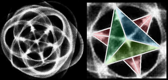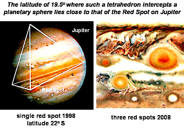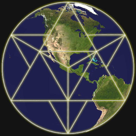 13. 放在一个球形中的星四面体(tetrahedral),顶点会触碰到球形表面,当一个顶点定位在北极或南极,这顶点的纬度就是北纬和南纬19.5度。