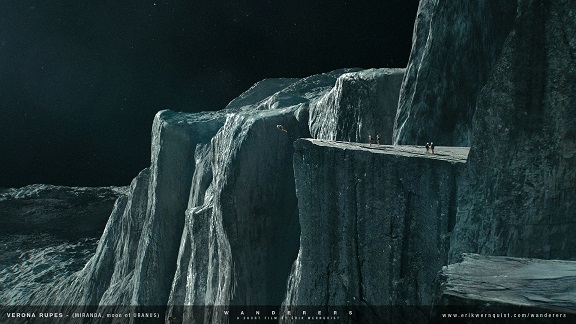 在不到4分钟的时间里,漫浪者(Wanderers)带领我们穿过太阳系,走一趟扣人心弦之旅。例如,人类从已知为太阳系最高悬崖的未来定点弹跳跳下,这个最高悬崖是维罗纳断崖(Verona Rupes),位于天王星的卫星米兰达(Miranda),以及漂浮通过土星云层。