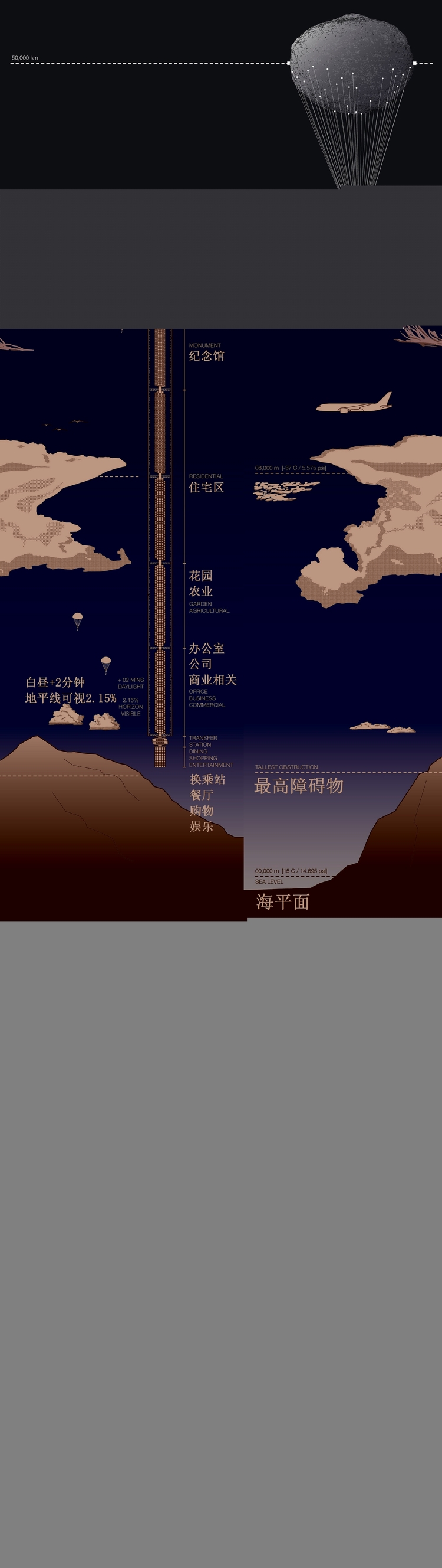 建筑师表示,小行星目前计算将在离地5万公里的高空运转,而摩天楼离地约32公里,人类如果要从这么高的地方回归到地球上,可要穿防护衣跳降落伞下来,不然高空大气的-40度气温会让人瞬间冻结。