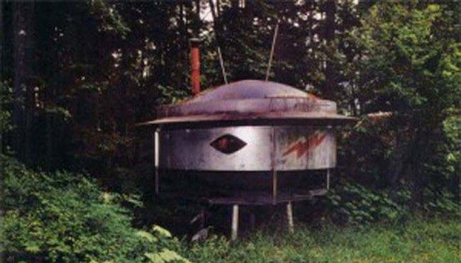 他最值得纪念的杰作就是用两片碟型卫星天线结合家具、电视和炉子来建造一个和幽浮形状相似的遮蔽物。