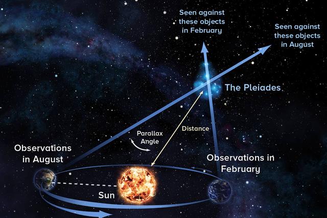 科学家通过地球围绕太阳运动的轨道两侧,对昂星团进行观测,得出了精确的距离值
