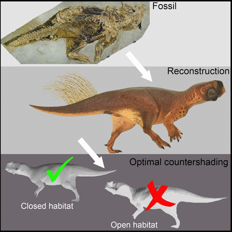 很多动物及昆虫以及许多现代的动物,包括鹿和鲨鱼,都有类似的“反荫蔽”保护色,它们的上侧体色较深但下侧颜色较浅,从下方逆着浅色往上看去,使它们在林中或水中较难被发现。鹦鹉嘴龙的反荫蔽伪装,跟现今生活在封闭栖息地的动物相似,因此可进一步推论鹦鹉嘴龙是栖息于茂密的森林树冠下,而非在稀树草原,这是科学家首次使用这类讯息来推断一个古老动物的自然栖息地。