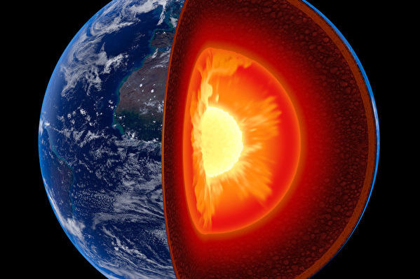 地球内核示意图。