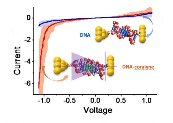然而,当一个名为’coralyne’的分子层被插入DNA层之间,电路的行为有了戏剧性的改变。