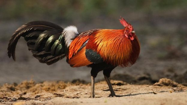 一只雄性原鸡(Gallus gallus),这是与家鸡血缘关系最近的野生鸟类。 (图片来源: Tony Heald/naturepl.com)