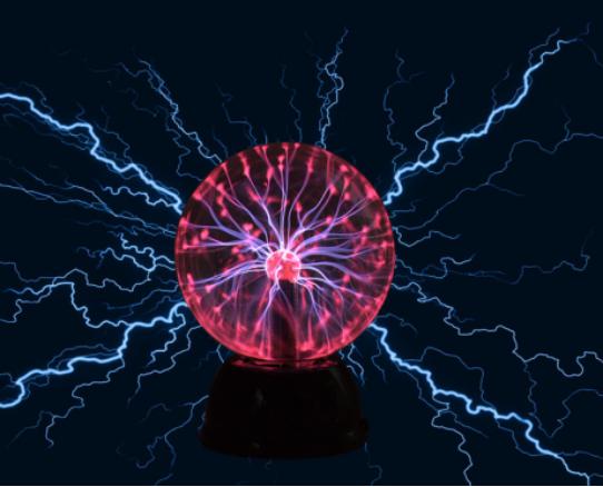 言归正传,这种看起来非常魔幻现实主义的水晶球其实就是等离子球,它外面是高强度玻璃球壳,球内充有不发生化学反应的惰性气体,玻璃球中央有一个黑色球状电极,能在通电后产生高频电压电场,由于球内稀薄气体受到高频电场的电离作用而光芒四射,从而产生神秘的色彩。