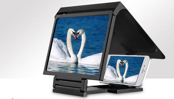 它能利用反射原理将手机屏幕放大数倍,几乎适用于市面上所有的手机,而且画面不晕不花,特别适合在长途旅行时用来看剧看电影。