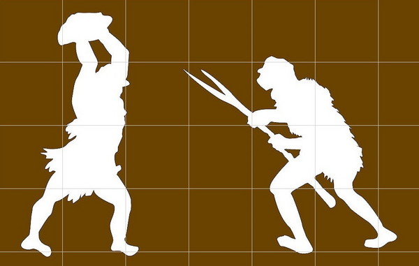 印尼佛洛勒斯岛出土哈比人化石。原始人示意图。