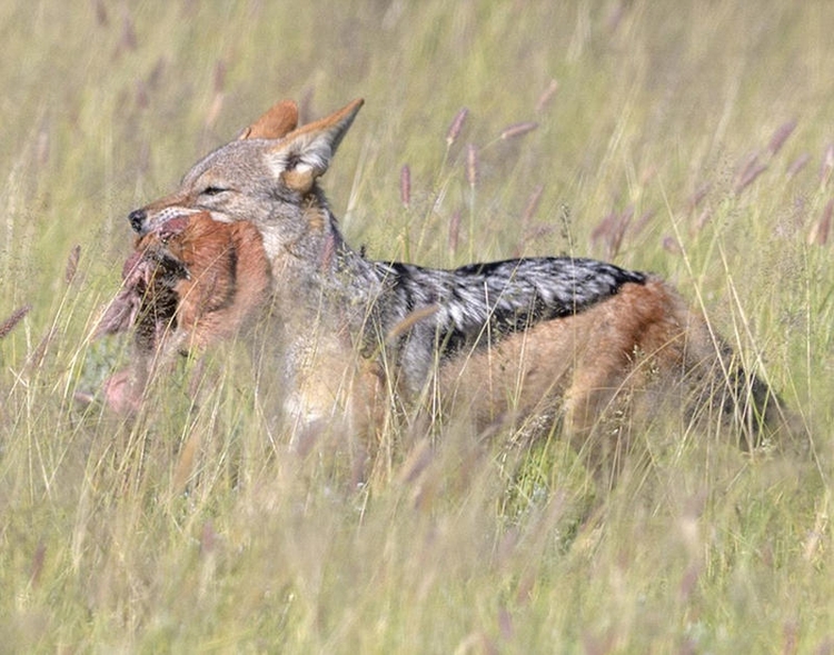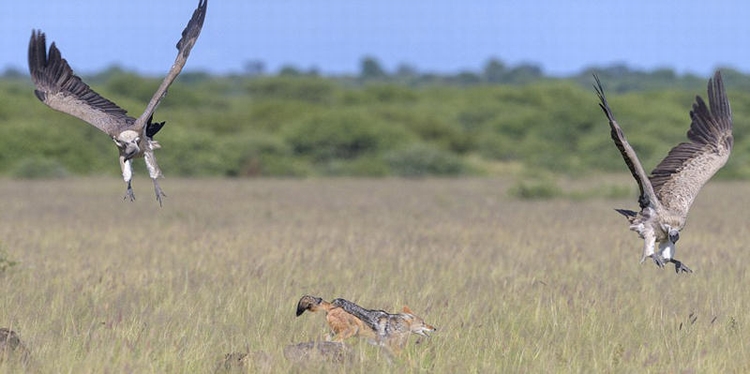 这些秃鹰在豺狼面前并不占优势,豺狼行动敏捷,在抵挡进攻的同时叼着猎物迅速逃走。但这一战并不容易,足足花费了10分钟。