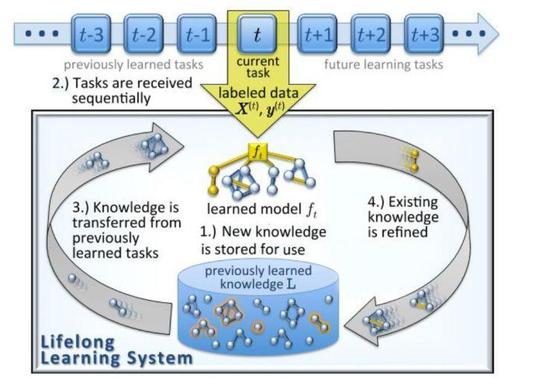 活到老学到老,人的一生是学习的一生。终身学习(Life-long Learning)是一种能够存储学习过的任务知识,并能利用旧知识快速学习新任务的完整系统方案。相较于传统机器学习方法,终身学习凭借任务间的知识共享和知识库的知识积累,突破了学习过程在样本集和时间上的限制,为实现高效及高度智能化的系统提供可能。