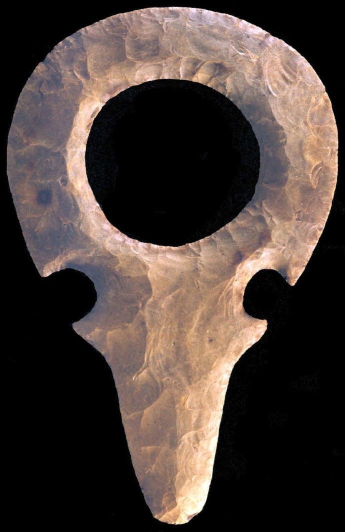 下图为1万年前北美洲克洛维斯文化的石制矛头,那时他们就已经用燧石磨成尖锐的矛头做为武器进行捕猎。