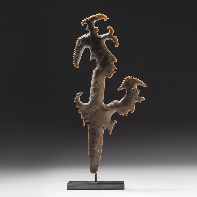 这些玛雅石器的原料用的都是“燧石”(也就是打火石),这种石头比玻璃还硬的二氧化硅(SiO2)矿物,一碰就出火花,力气小了不行大了又会碎,那玛雅人是怎么打磨的呢?他们用鹿角、树枝等工具一点点“磨”出了这样的棱角,这应该就是现代人所说的“工匠精神”吧。都说十年磨一剑,如果用千年磨一石那才叫厉害吧?