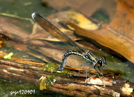 棋纹鼓蟌将卵产在腐败的枯叶或枯枝上。