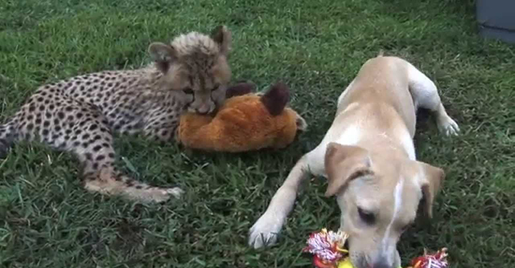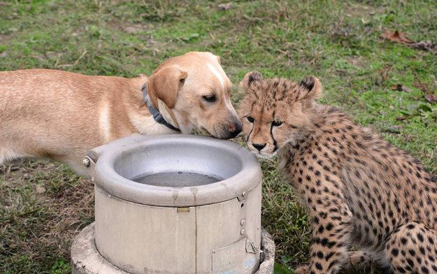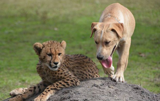 狗被用来作为囚禁猎豹的伙伴超过30年。圣地亚哥动物园(San Diego Zoo)首创这个想法,而他动物园跟着实施。里奇蒙都会动物园解释为什么他们配对这两只动物: