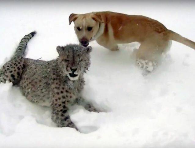 你可能会认为把狗放在一个有猎豹的封闭区是有危险的,特别是狗而言,但动物园表示它们是相当安全的。