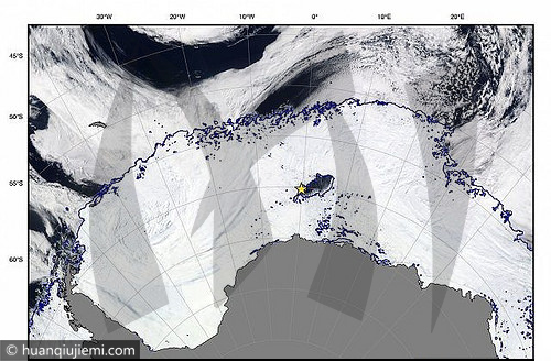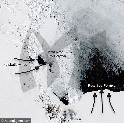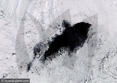Moore说,“这距离冰边几百公里,如果我们没有卫星,我们就不知道在哪里”,冰间湖的面积是8万平方公里(30,900平方英里)。