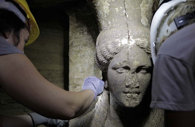 在希腊的古墓中发现了一座坟墓。有两座高大的大理石雕像守卫着入口,这些雕像被称为女像柱。由于这一发现,考古学家和历史学家无法确认这是谁的墓而争论不休。一个版本说是奥林匹亚的坟墓,另一种说法认为这墓是罗克珊娜的,亚历山大大帝的妻子,第三版否认这些坟墓与亚历山大大帝家族有联系。